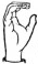 На ћирилици написано АЛЕКСА ДОВЕДАН састоји се из 13 слова [?]. Исписано ћириличном једноручном азбуком за глувонеме:
